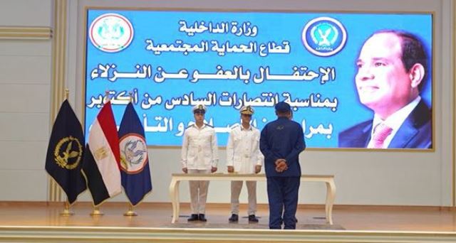 أعلنت وزارة الداخلية الإفراج بالعفو عن (2735) نزيلا من نزلاء مراكز الإصلاح والتأهيل بمناسبة الإحتفال بذكرى نصر أكتوبر المجيد.. وذلك تنفيذاً لقرار السيد رئيس الجمهورية رقم (565) لسنة (2025) بشأن الإفراج بالعفو عن باقى مدة العقوبة بالنسبة لبعض المحكوم عليهم الذين استوفوا شروط العفو بمناسبة الاحتفال بذكرى نصر أكتوبر المجيد لعام 2025.