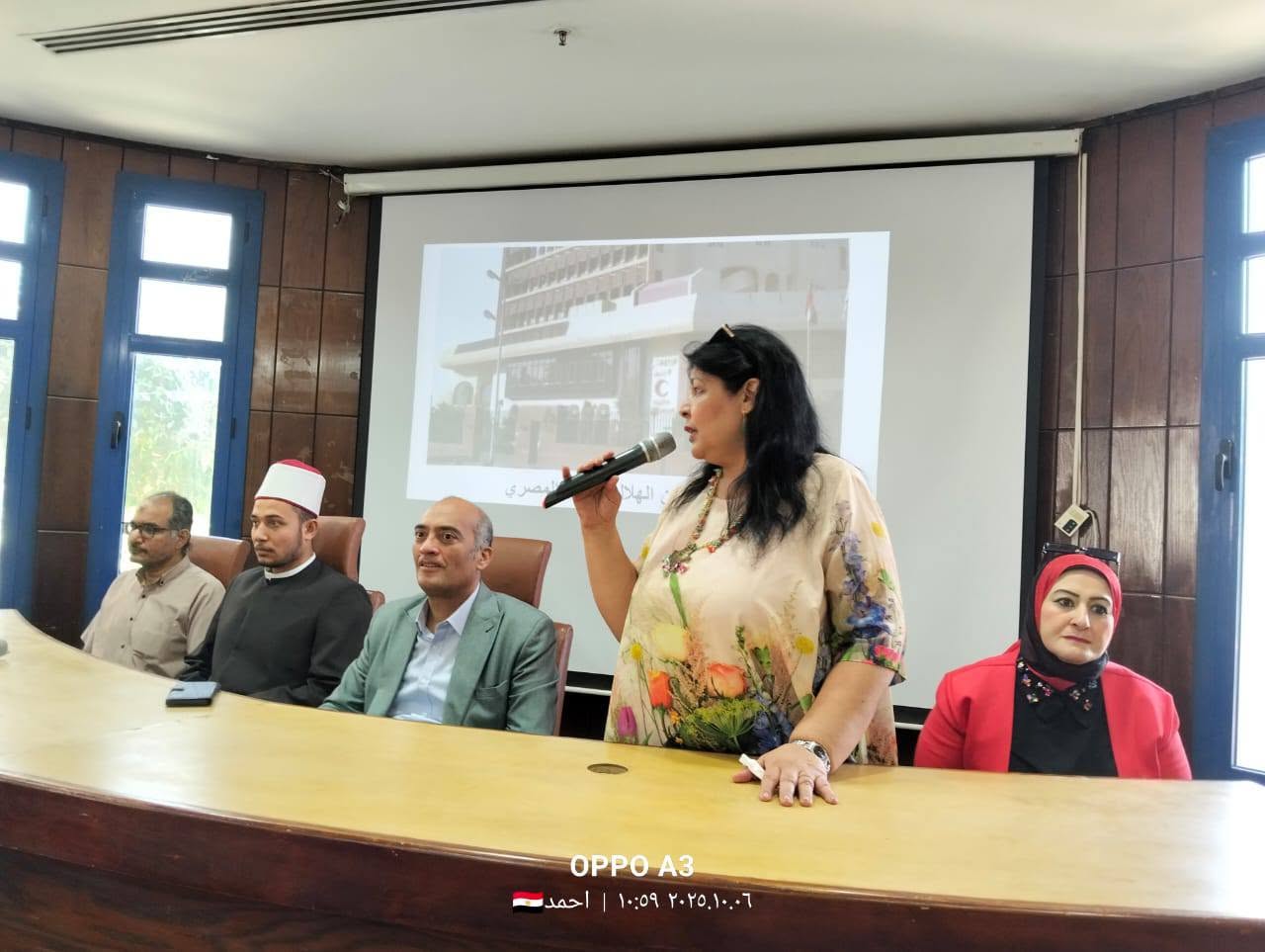الدكتور طه نصر مدير مكتبة مصر العامة و سحر كمال رئيس قسم البرامج والمشروعات - توجيه عام التربية الاجتماعية بمديرية التربية والتعليم، و تامر مرسال عضو مجلس إدارة الهلال الأحمر المصرى بالمنيا ومسئول توعية .