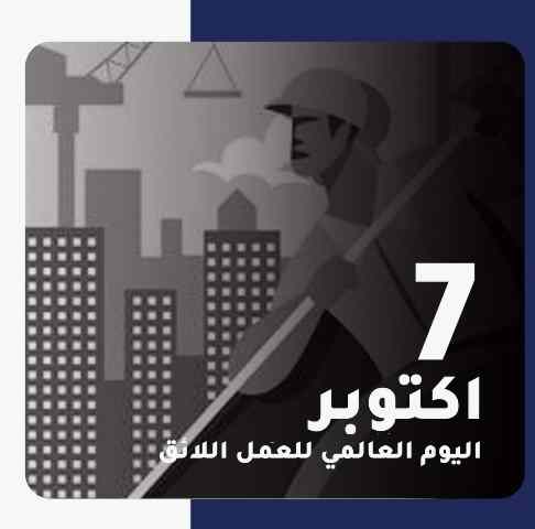 يُصادف 7 أكتوبر من كل عام "اليوم العالمي للعمل اللائق"، الذي أطلقته منظمة العمل الدولية (ILO) عام 2008، لتسليط الضوء على أهمية توفير بيئة عمل آمنة، عادلة، ومحترمة لكل فرد، بهدف التأكيد على أن العمل ليس فقط وسيلة للعيش، بل يجب أن يكون مصدرًا للكرامة، والأمان، والعدالة الاجتماعية.
