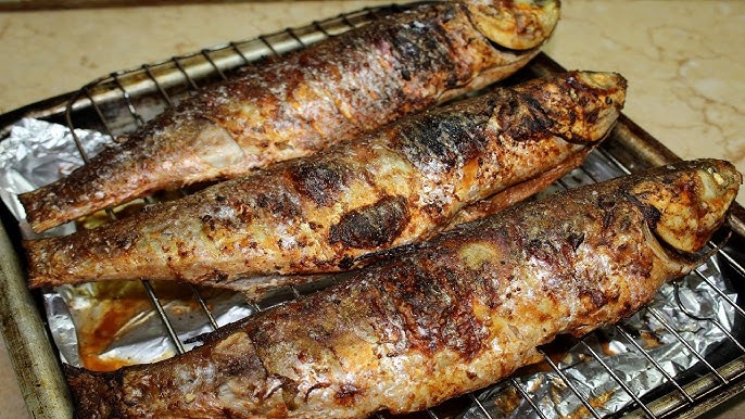 على الفحم أو الجريل: ضع السمك على شواية ساخنة مدهونة بالقليل من الزيت، واشوهه لمدة 7–10 دقائق على كل جانب حسب الحجم.