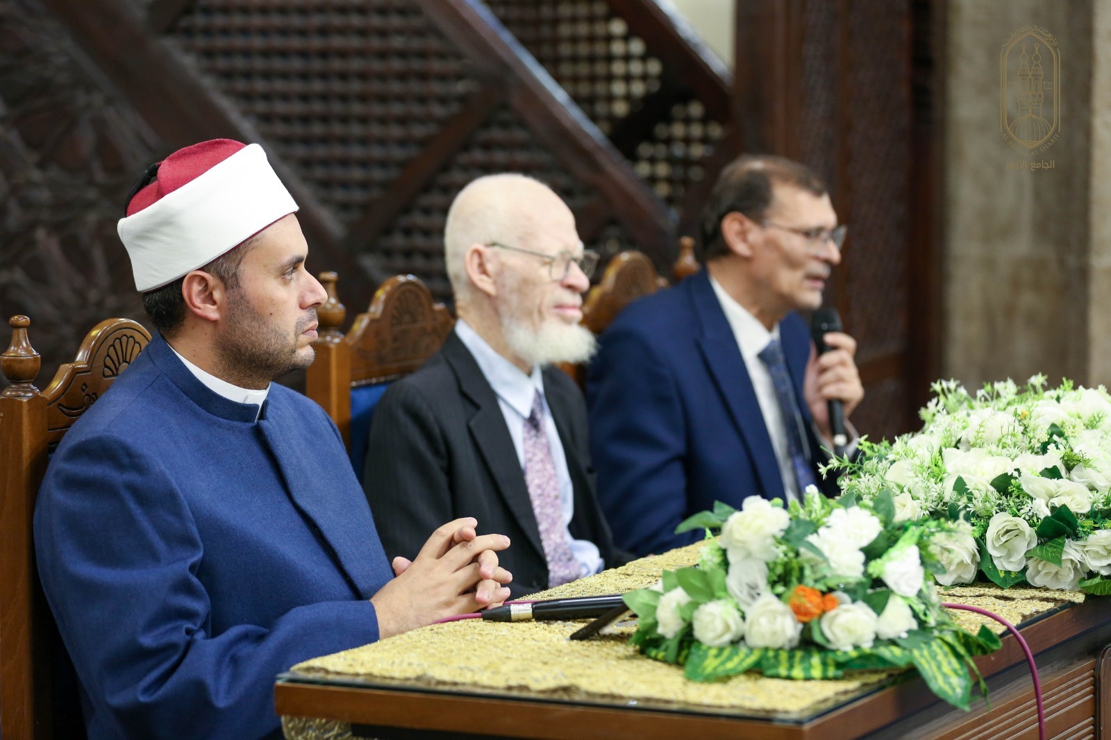 عقد الجامع الأزهر اللقاء الأسبوعي لملتقى الأزهر للقضايا المعاصرة، تحت عنوان "عوامل النصر كما صورها الإسلام"، وذلك بحضور كل من؛ أ.د/ جميل تعيلب، وكيل كلية أصول الدين سابقا، وأ.د/ حبيب الله حسن، أستاذ العقيدة والفلسفة بكلية الدراسات الإسلامية والعربية بالقاهرة، وأدار الملتقى الدكتور أحمد الطباخ، مدير المكتب الفني للجامع الأزهر.