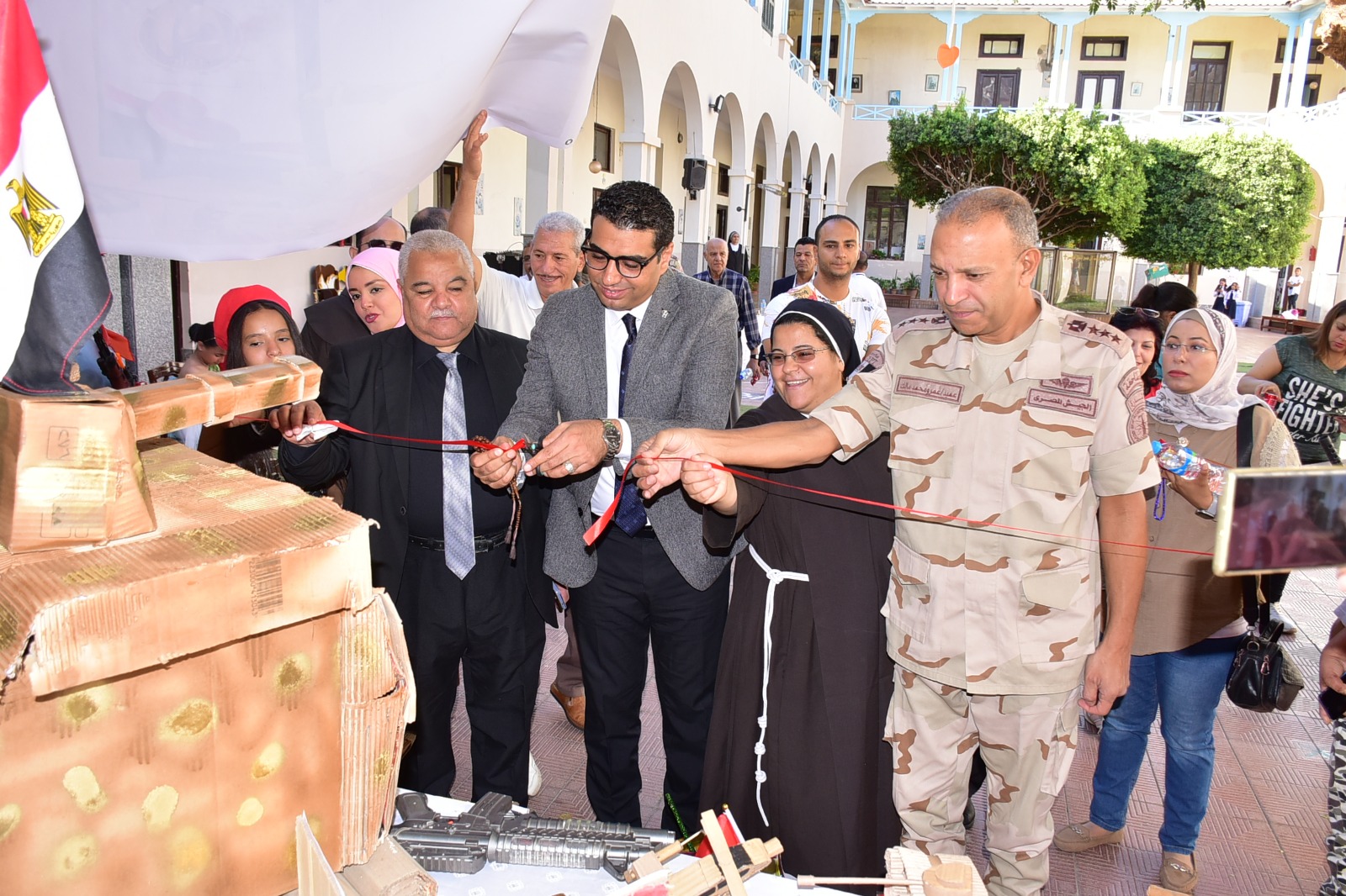 فى اطار الاحتفالات بانتصارات أكتوبر المجيدة شهد الدكتور هشام أبو زيد نائب محافظ الأقصر فعاليات الحفل الذى نظمته مدرسة الراهبات الفرنسيسكانيات بالأقصر بمناسبة احتفالات انتصارات أكتوبر ويوم السلام، إلى جانب افتتاح المعرض الفنى لطالبات المدرسة