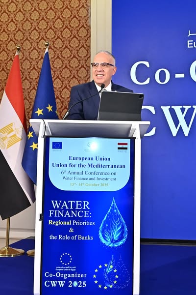 وأضاف سيادته أنه وفى ضوء التوصيات الخاصة بتمويل قطاع المياه - الصادرة عن الإجتماع الوزاري للإتحاد من أجل المتوسط الذى عقد بالقاهرة مؤخرا - تشكل خارطة طريق عملية لسد فجوة الإستثمار في منطقة حوض المتوسط، وتعكس تحولاً في النهج نحو بناء منظومة استثمارية ديناميكية تُفعّل دور البنوك التجارية الوطنية، ومؤسسات التمويل التنموي، وآليات التمويل المدمج بما يشمل الشراكات بين القطاعين العام والخاص (PPPs)، ويرتكز هذا النهج في جوهره على مبادئ الترابط بين المياه والطاقة والغذاء والأنظمة البيئية (WEFE Nexus)، من أجل بناء قطاع مائي مرن مناخياً ومستدام مالياً .