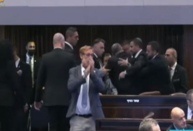 وطالب رئيس الكنيست الأمن بإخراجه خارج القاعة لاستكمال كلمة ترامب.