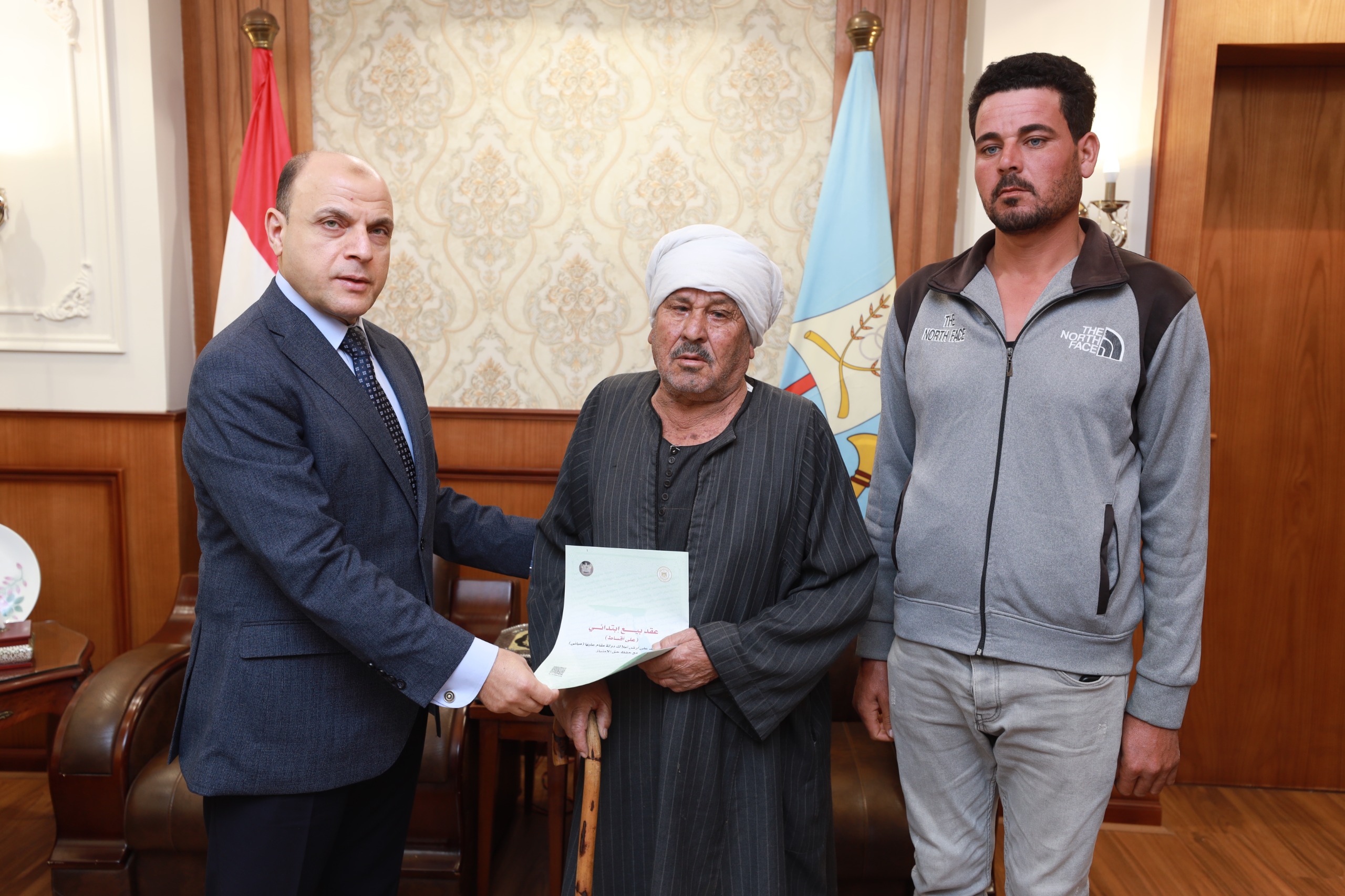 قام اللواء دكتور علاء عبدالمعطي، محافظ كفرالشيخ، اليوم الاثنين، بتسليم 15 عقد تقنين أراضي أملاك دولة للمستفيدين من المواطنين واضعي اليد على أملاك الدولة، مع استكمال كافة الإجراءات الخاصة بالتقنين وموافقة الجهات المعنية طبقًا للقانون، بحضور بدر حلمى زيدان، مدير عام الشؤون القانونية، مشيدًا بتضافر جهود كافة الجهات التنفيذية في إتمام عمليات وإجراءات التقنين