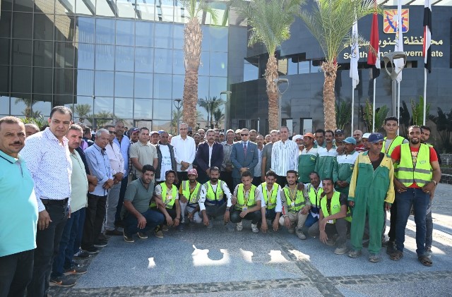وفي كلمته للعمال قال محافظ جنوب سيناء: " أنتم رجال فوق الظل وفوق الرأس، فأنتم أساس العمل والإنتاج، وسواعد البناء والتنمية في كل موقع على أرض جنوب سيناء."