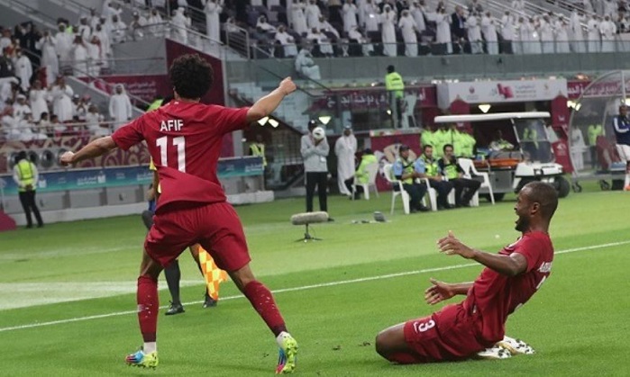 تقدم بوعلام خوخي بالتسجيل لمنتخب قطر في الدقيقة 50 بعد كرة عرضية متقنة من أكرم عفيف نفذها من ضربة حرة، لترتقي رأسية خوخي وتسكن الشباك معلنة عن الهدف الأول.