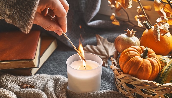 الشموع تمنح المكان إضاءة دافئة مثالية للخريف.