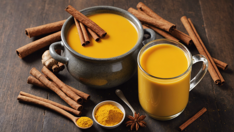 سخّن الحليب مع الكركم، الزنجبيل، القرفة، والفلفل الأسود على نار متوسطة مع التحريك المستمر.