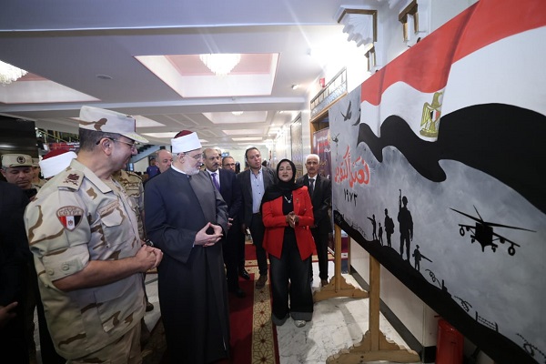 افتتح فضيلة أ.د/ محمد الضويني، وكيل الأزهر الشريف، والسيد اللواء أركان حرب هشام حسني حسن، قائد قوات الدفاع الشعبي والعسكري، وأ.د/ سلامة داود، رئيس جامعة الأزهر، والشيخ أيمن عبدالغني، رئيس قطاع المعاهد الأزهرية، وأ.د/ محمد الجندي، الأمين العام لمجمع البحوث الإسلامية، وعدد من القيادات الأزهرية وقيادات الدفاع الشعبي والعسكري، المعرض الفني المُقام على هامش الندوة التثقيفية الكبرى التاسعة والثمانين لقوات الدفاع الشعبي والعسكري، والتي جاءت بعنوان «ويُثبِّت أقدامكم»، احتفاءً بالذكرى الثانية والخمسين لانتصارات أكتوبر المجيدة، وذلك بالتعاون مع الأزهر الشريف.