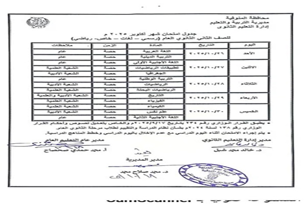 أعلنت مديرية التربية والتعليم بمحافظة المنوفية بدء تنفيذ تقييمات شهر أكتوبر لكافة صفوف مراحل النقل الابتدائي والإعدادي والثانوي.
