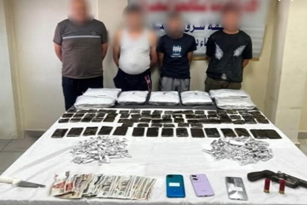 بسام ع. ع. م وشهرته بسام العمدة، 24 عامًا، عاطل – زعيم التشكيل العصابي.حسام ج. م ، 23 عامًا، عاطل. بهتيني ر. ب، 33 عامًا، عاطل. عُثر بحوزتهم على 20 كيلوجرامًا من مخدر الشابو..بندقية خرطوش وفردين خرطوش.كمية من الذخائر الحية.دراجة نارية بدون لوحات معدنية.