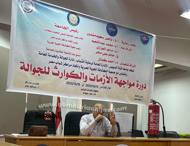 في إطار حرص إدارة جامعة مدينة السادات على تمكين طلاب الجوالة وتنمية قدراتهم القيادية والتحليلية في تقييم المخاطر ووضع السيناريوهات الفعّالة واتخاذ القرارات الحاسمة تحت الضغط، بما يُعزّز من جاهزيتهم واستعدادهم لمواجهة التحديات الطارئة، شاركت جامعة مدينة السادات في الدورة التدريبية المتخصصة التي عُقدت تحت عنوان "مواجهة الأزمات والكوارث" بمقر جمعية الكشافة الجوية بالإسماعيلية خلال الفترة من 15 إلى 18 أكتوبر 2025، والتي نظمتها جمعية الكشافة الجوية المركزية المصرية، تحت رعاية الدكتور أشرف صبحي، وزير الشباب والرياضة، وبإشراف الدكتور خالد حسن عيسوي، رئيس الاتحاد العام للكشافة والمرشدات، والمهندس حاتم علي ماهر، رئيس جمعية الكشافة الجوية المركزية المصرية.