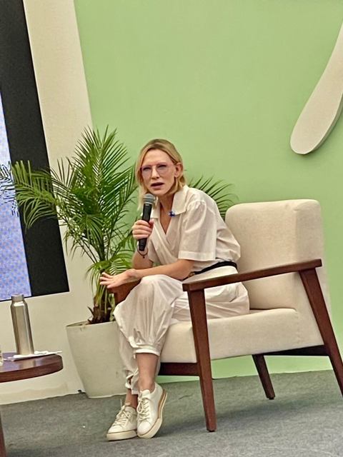وسط حضور جماهيري وقاعة مكتملة العدد، هكذا كانت أجواء الجلسة الحوارية للعالمية كيت بلانشيت خلال الدورة الثامنة من مهرجان الجونة السينمائي، حيث إدارتها الإعلامية ريا ابي راشد، وذلك بعد حصولها على جائزة الإنسانية.