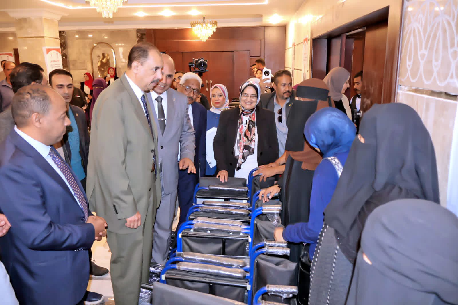 وعلى هامش الاحتفالية افتتح السيد المحافظ معرض المنتجات الحرفية للأشخاص ذوي الإعاقة، وقام بتسليم عدد 16 عقد عمل لذوي الإعاقة، بالإضافة إلى تسليمه 30 كرسي متحرك .