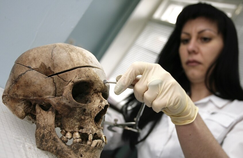 في البداية اعتقد خبراء الطب الشرعي الذين وصلوا إلى مكان الحادث، أنهم يتعاملون مع آثار جريمة حديثة أو بقايا شخص مفقود. لكن التحليل المخبري أعطى نتائج غير متوقعة: قطعة العظام المكتشفة، هي جزء من العظم القذالي وحجمها بحجم راحة يد شخص بالغ، ويبلغ عمرها نحو 4200 عام.