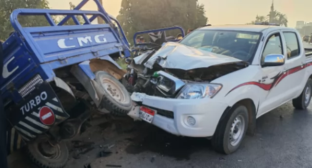 تبين من التحريات وقوع حادث تصادم بين سيارة ربع نقل رقم "٤٧٩٨ ى ج د" وعدد 2 مركبة تروسيكل على الطريق الزراعي، أسيوط / ديروط بمركز منفلوط.