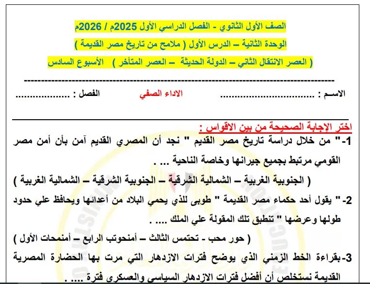 تنشر بوابة الجمهورية أون لاين تقييمات الأسبوع السادس للصف الأول الثانوي في التاريخ ويمكن للطلاب تحميلها مباشرة .