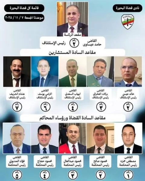 وبناء عليه أعلنت اللجنة تشكيل مجلس ادارة نادى قضاة البحيرة على النحو التالى: