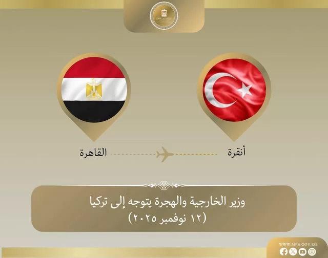 توجه د. بدر عبد العاطي وزير الخارجية والهجرة وشئون المصريين بالخارج، اليوم الاربعاء ١٢ نوفمبر ٢٠٢٥، إلى تركيا، في زيارة تستهدف بحث سبل تعزيز العلاقات الثنائية بين مصر وجمهورية تركيا الشقيقة، والتشاور حول عدد من القضايا الإقليمية والدولية محل الاهتمام المشترك.