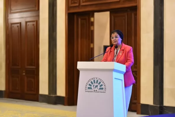 وفي الكلمة الافتتاحية، رحبت الدكتورة عبلة الألفي، نائب href="https://www.gomhuriaonline.com/?action=Search&A=1&SearchWord=وزير &Search=" target="_blank"> style="color:#e74c3c">وزير href="https://www.gomhuriaonline.com/?action=Search&A=1&SearchWord=الصحة&Search=" target="_blank"> style="color:#e74c3c">الصحة href="https://www.gomhuriaonline.com/?action=Search&A=1&SearchWord= والسكان&Search=" target="_blank"> style="color:#e74c3c"> والسكان، بوفود دول D-8، مؤكدة أن هذا الاجتماع يمثل نقطة انطلاق تاريخية لمسار صحي مشترك يجمع أكثر من 1.1 مليار نسمة، ويؤكد أن href="https://www.gomhuriaonline.com/?action=Search&A=1&SearchWord=الصحة&Search=" target="_blank"> style="color:#e74c3c">الصحة ركيزة أساسية للأمن والازدهار وكرامة الإنسان.