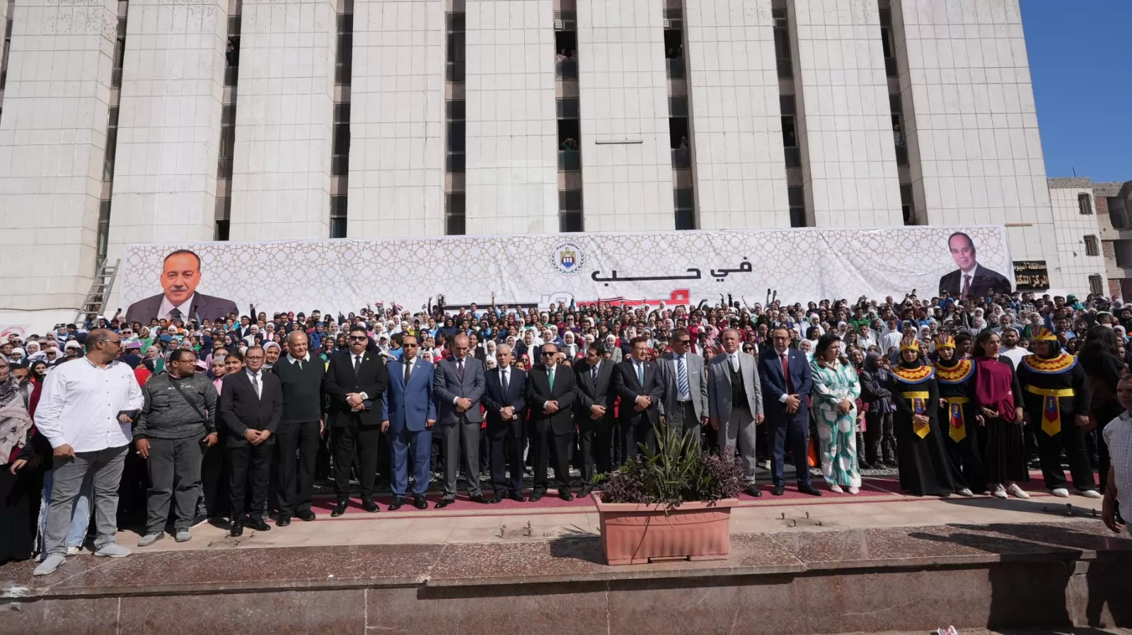 وعقب ختام البرنامج، شهد محيط ديوان عام المحافظة مشهدًا وطنيًا لافتًا، حيث تجمع آلاف المتدربين في لقطة جماعية رسمية عكست روح الانتماء والفخر. واصطف المشاركون في ساحة الديوان وسط أجواء احتفالية تزينت بالأعلام المصرية وصور الرئيس عبدالفتاح السيسي، بينما ارتفعت الأغاني الوطنية في الخلفية لتضفي على المشهد طابعًا مميزًا يجسد وحدة الشباب وحماسهم.