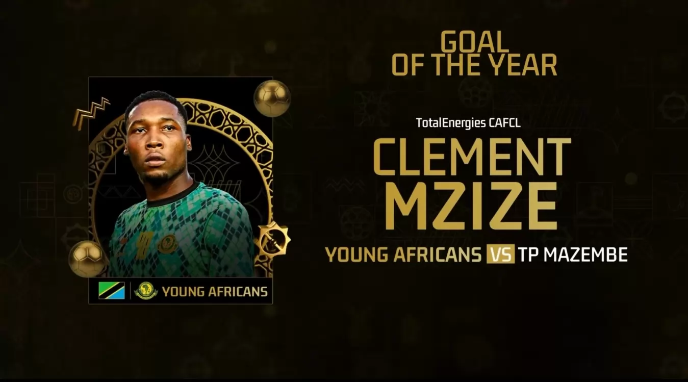 وفاز هدف مزيزي لاعب فريق يانج أفريكانز التنزاني في مرمى تي بي مازيمبي الكونغولي الديمقرطي ببطولة دوري أبطال أفريقيا الموسم الماضي بجائزة الهدف الأفضل في أفريقيا لعام 2025.