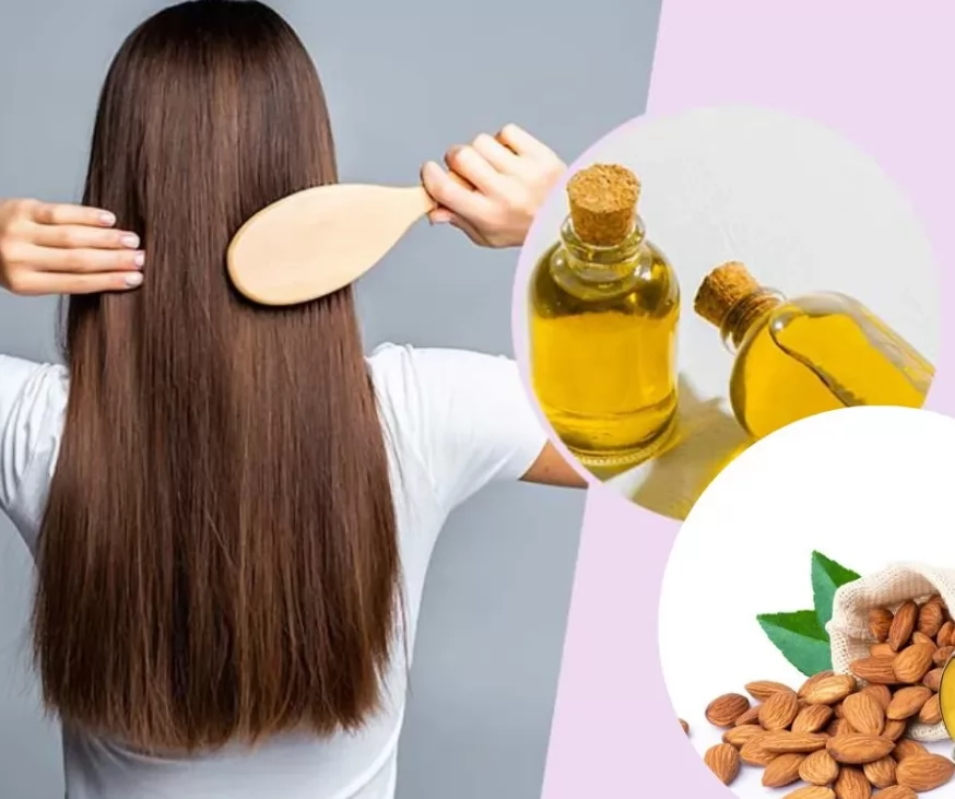 تغذية فروة الرأس وتحفيز النمو: تدليك فروة الرأس بزيت اللوز يحسن من الدورة الدموية ويغذي بصيلات الشعر، مما قد يساهم في تقليل التساقط وتعزيز كثافة الشعر بمرور الوقت.
