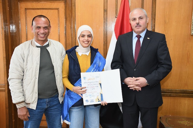 حيث كرم رئيس الجامعة الطالبة زينب مصطفى رشاد: الحاصلة على بكالوريوس العلوم الزراعية بتقدير "ممتاز مع مرتبة الشرف".