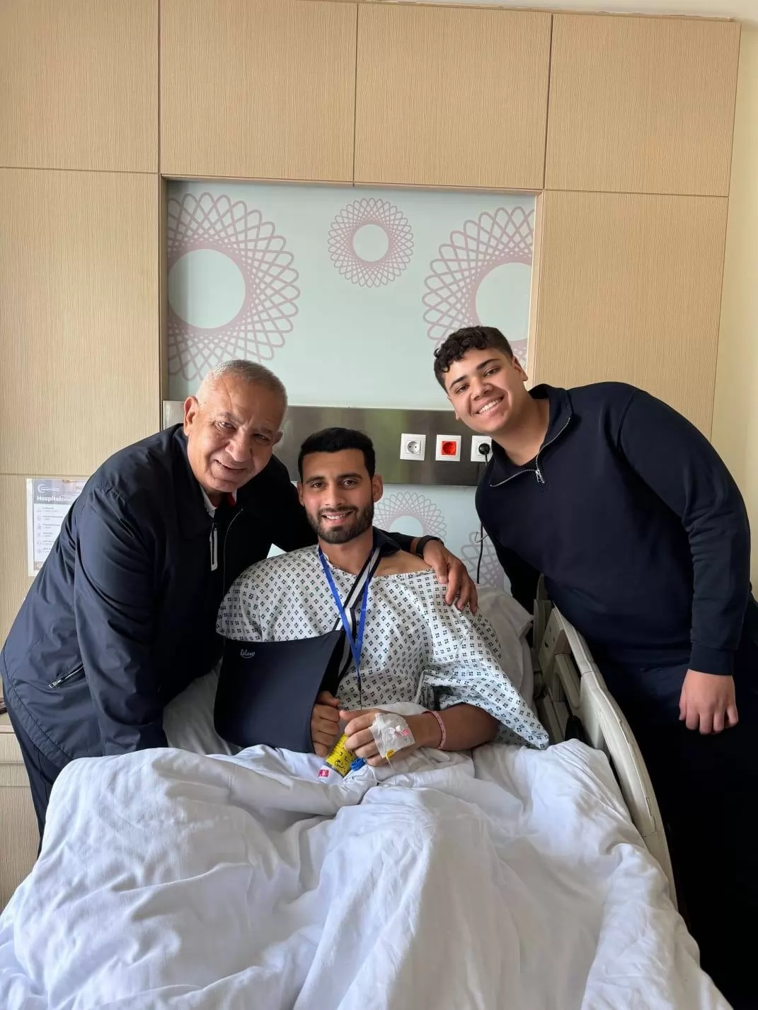 حيث اطمئن سيادته على الحالة الصحية للاعب من الأستاذ الدكتور أشرف محرم استشاري جراحة اليد والطرف العلوي والجراحة الميكرسكوبية والذي أكد على نجاح العملية تمامًا والتي سيخضع اللاعب بعدها لفترة نقاهة قبل البدء في التدريبات التأهيلية.