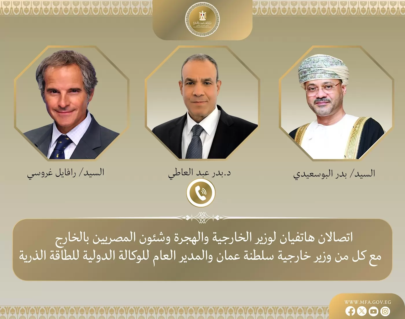 وفي سياق متصل، تلقى وزير الخارجية اتصالاً هاتفيًا من السيد رافائيل جروسي المدير العام للوكالة الدولية للطاقة الذرية يوم السبت ٧ فبراير، حيث تناول الاتصال التطورات المتعلقة بالملف النووي الايراني، حيث أكد الوزير عبد العاطي في هذا الصدد استمرار الجهود المصرية الرامية لخفض التصعيد في المنطقة، مشدداً على أهمية مواصلة بذل الجهود الإقليمية والدولية لخفض حدة التوتر والتصعيد بالمنطقة والدفع بالحلول الدبلوماسية، مشددا أن مصر ستواصل اتصالاتها المكثفة وجهودها الحثيثة لدعم التوصل إلى تسويات تعزز من منظومة الأمن والاستقرار الإقليمي والدولي.
