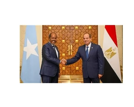 أعرب الرئيس الصومالي حسن شيخ محمود عن سعادته بزيارة مصر ولقاء الرئيس السيسي، مثمناً العلاقات الأخوية بين البلدين، ومقدراً دعم مصر لوحدة واستقرار الصومال، وجهودها في تعزيز الأمن والاستقرار في الشرق الأوسط والقرن الأفريقي،