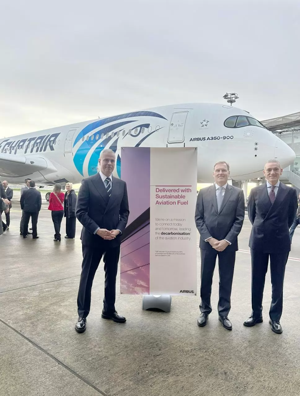 وعلى هامش استلام الطائرة في فرنسا، أُقيمت إحتفالية خاصة بمصنع شركة إيرباص بمدينة تولوز الفرنسية، بحضور الطيار أحمد عادل رئيس مجلس إدارة الشركة القابضة لمصر للطيران،و Mr. Wouter Van Wersch نائب الرئيس التنفيذي لشركة Airbus International، إلى جانب عدد من مسؤولي شركة إيرباص وشركاء النجاح من باناسونيك ورولز رويس، وذلك إحتفاءً بانضمام أول طائرة من طراز A350-900 إلى أسطول مصر للطيران.