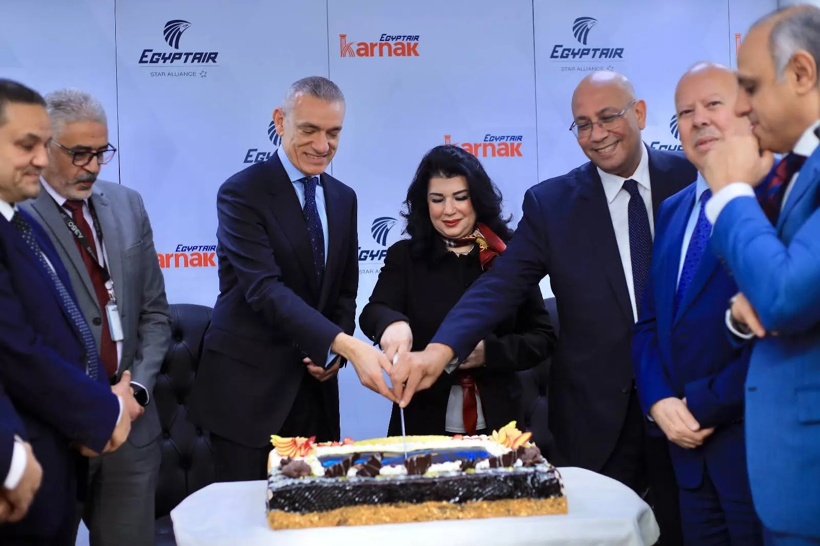 شارك في الاحتفالية كل من الطيار محمد عليان رئيس شركة مصر للخطوط الجوية، وسهير عبدالله رئيس شركة مصر للطيران للخدمات الجوية، وخالد عطوة رئيس شركة مصر للطيران للخدمات الأرضية ، والطيار حافظ الشيتى نائب رئيس شركة مصر للطيران للخطوط الجوية وعدد من ورؤساء القطاعات و قيادات الشركة .