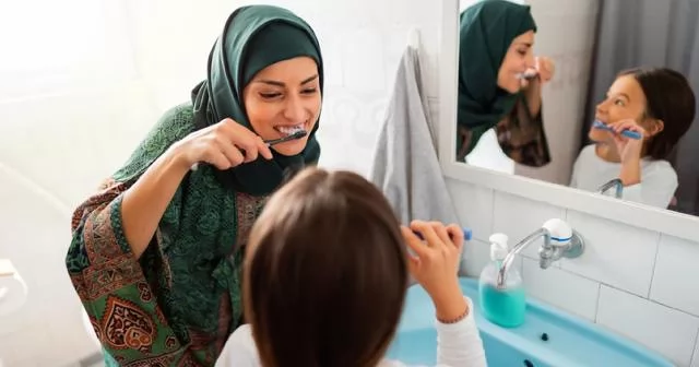 تنظيف الأسنان مرتين يوميًا بعد الإفطار وقبل النوم بمعجون يحتوي على الفلورايد، مع استخدام خيط الأسنان.