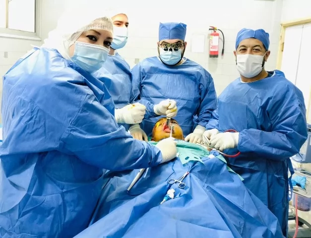 وقد اجريت الجراحة على يد فريق طبي ضم الدكتور محمد علي الجراحي استشاري ورئيس قسم جراحة الوجه والفكين، والدكتور محمود أكرم الدمرداش أخصائي جراحة الوجه والفكين، والدكتور فارس الزايدي طبيب مقيم جراحة الوجه والفكين، والدكتور أحمد الشيخ أخصائي التخدير، بمشاركة فريق تمريض العمليات مس مي فاروق ومس إيناس مصباح، وفنيي التخدير محمد الناغي وحسن أيمن.