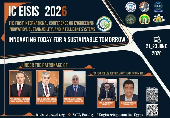 انطلاق المؤتمر الدولي الأول للابتكار الهندسي والاستدامة والأنظمة الذكية IC EISIS 2026 بجامعة قناة السويس في 21 يونيو 2026....