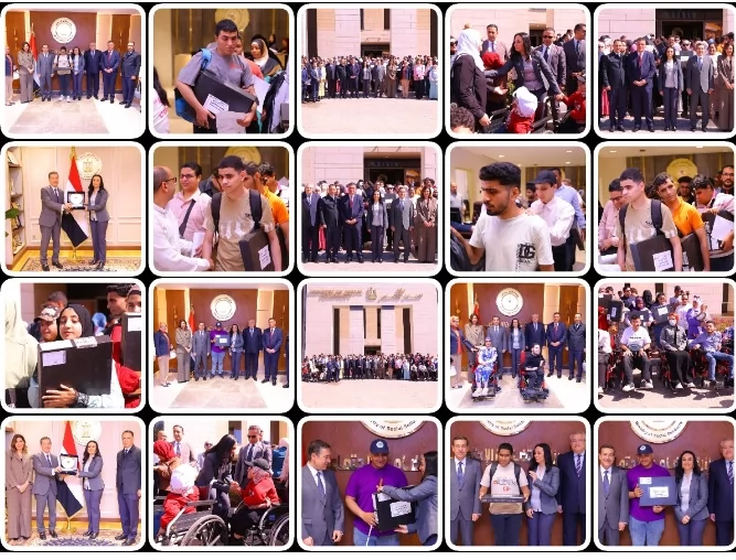 وقامت وزيرة التضامن الاجتماعي بتوزيع 150 لاب توب ناطق للطلاب من ذوي الإعاقة البصرية، فضلا عن توزيع 25 كرسي متحرك كهرباء للطلاب من ذوي الإعاقة الحركية.