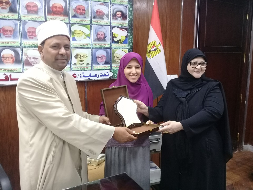 كرم الدكتور علي عبدالحافظ، رئيس الإدارة المركزية لمنطقة أسيوط الأزهرية، الطالبة سارة علاء الدين جلال علي، الحاصلة علي المركز السابع علي مستوي الجمهورية في الشهادة الثانوية الأزهرية بمجموع 99.54% القسم العلمي، وذلك بمكتبه ، بحضور قيادات المنطقة الدكتور عبدالناصر حسن، وكيل المنطقة للعلوم العربية والشرعية، ومحمود عبدالمنعم، وكيل المنطقة للمواد الثقافية ورعاية الطلاب، والشيخ شعبان مرعي مدير التعليم النموذجي، و عزة أبو السعود عميدة معهد فتيات أسيوط النموذجي، وعدد من معلمات المعهد وولي أمر الطالبة