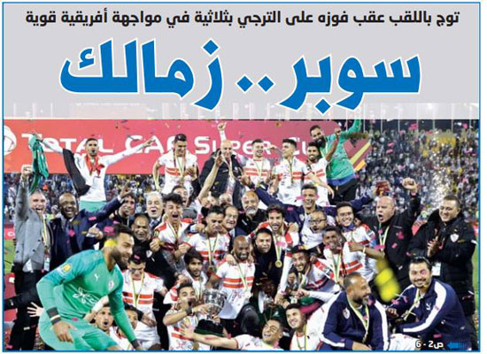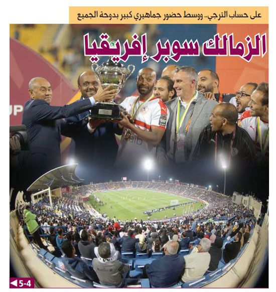 اما صحيفة الوطن الرياضى فكتبت "الابيض يتخطى الترجى التونسى ويتوج بالكأس الافريقية بالدوحة.. السوبر زملكاوى".