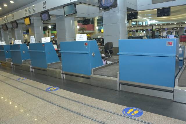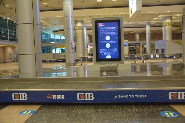 اضاف محروس ان ارشاد الركاب لتطبيق الاجراءات الاحترازية سيتم من خلال  عدة وسائل الاولي سماعيا من خلال الاذاعة الداخلية للمطار او من خلال العلامات الارشادية او من خلال الصور التي تملأ ارجاء المطار ..