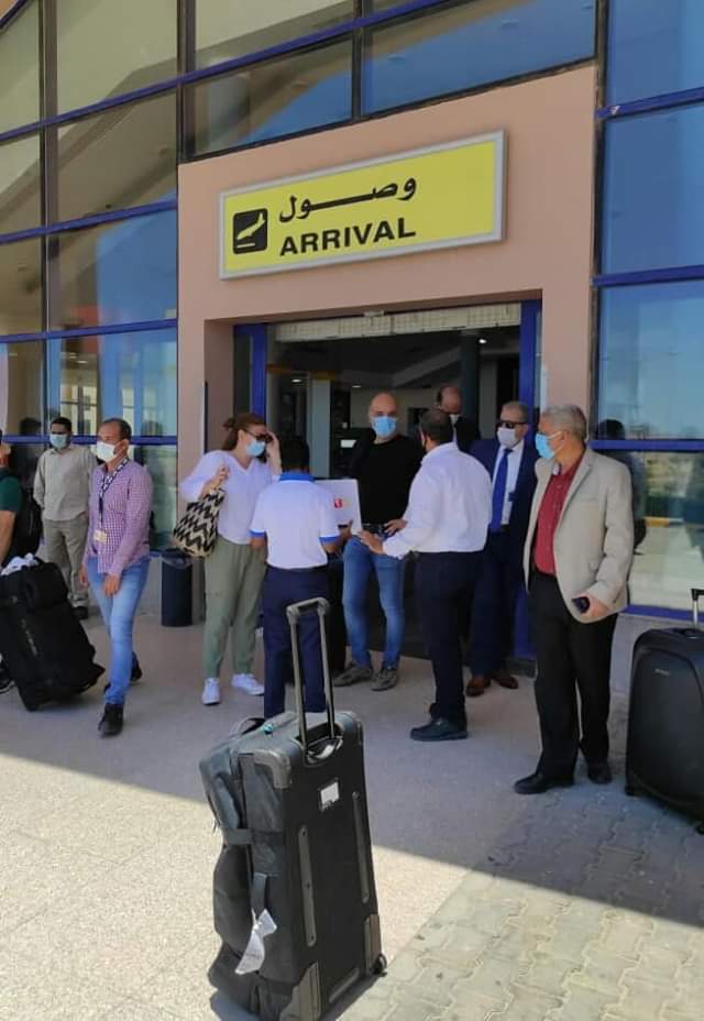 وقد تم تطبيق كافة الإجراءات الاحترازية على الركاب فور وصولهم حيث تم تعقيم الحقائب والركاب وقياس درجة الحرارة والتأكد من إرتداء الكمامات .