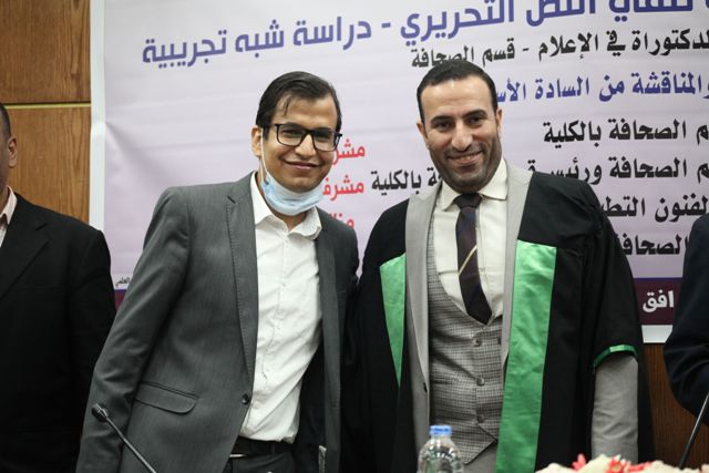 وضمت لجنة المناقشة عضوية كلٍ من الأستاذ الدكتور محمود علم الدين، الأستاذ بقسم الصحافة بكلية الإعلام مشرفًا ، والأستاذ الدكتور شريف درويش اللبان، رئيس قسم الصحافة مشرفًا مشاركًا، والأستاذة الدكتورة ميسون قطب، عميد كلية الفنون التطبيقية، جامعة حلوان مناقشًا، والأستاذ الدكتور سعيد الغريب، الأستاذ بقسم الصحافة مناقشًا.