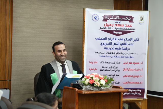 تأثير الإبداع في الإخراج الصحفي على تلقى النص التحريرى .. كان هذا هو موضوع الرسالة التى حصلها بموجبها الزميل عيد رحيل المدير الفنى لجريدة الدستور على درجة الدكتوراه من كلية الإعلام قسم الصحافة بدرجة ممتاز مع مرتبة الشرف وتوصية بالطبع و التوصية بالتبادل والنشر مع الجامعات