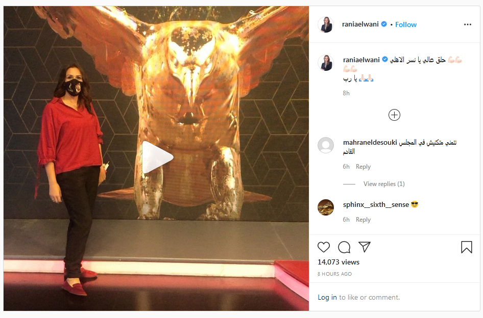 وقامت رانيا عبر حسابها بموقع التواصل الاجتماعي "انستجرام" بنشر صورة وكتبت قائلة: "حلق عالي يا نسر الأهلي .. يا رب".
