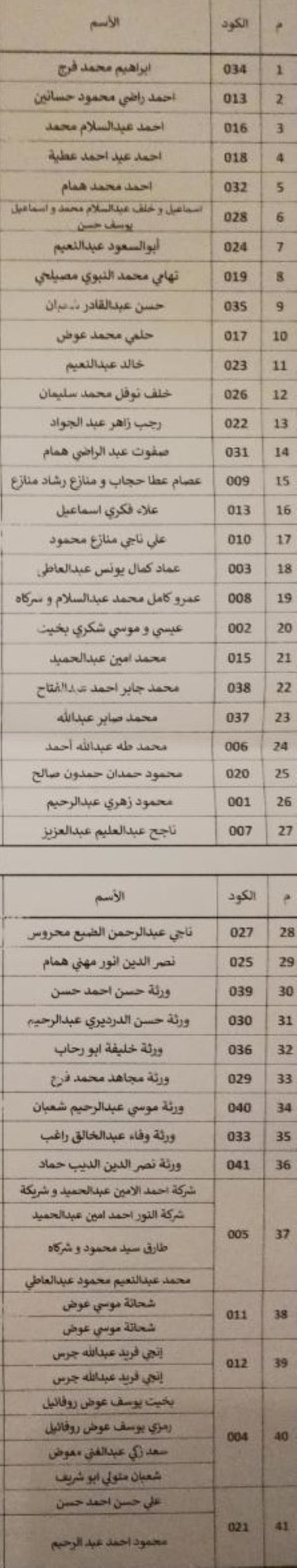 كشف رئيس مجلس أمناء مدينة الجلود بالروبيكى، أن أسماء المستحقين لتسكين فى المرحلة الإستكمالية للمرحلة الأولى جاءت كالتالى: