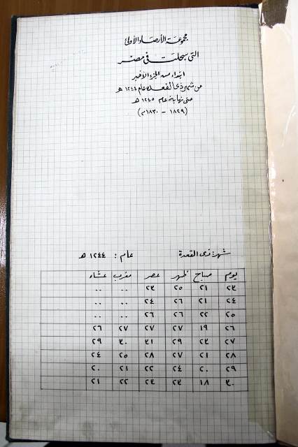 في مدخل مكتبة الهيئة العامة للارصاد يوجد كتيب من عهد "محمد علي باشا " منذ عام 1829، مدون بخط الإيد عن بيانات شهرية بدرجات الحرارة عن شهر يونيو، ولكنها كانت مرتبطة بمواقيت الصلاة (الصبح والظهر والعصر والمغرب والعشاء ) وليست العظمى والصغرى كما نحن عليه الأن، وهذة أول مدونه داخل علم الأرصاد الجوية داخل مصر .