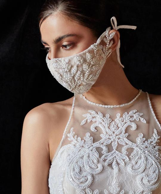 ولم يسلم "الكابلز" في الأفراح من ابتكارات المصممين ومحاولات التجار جذب الزبائن لهم فقاموا أيضاً بعمل كمامات للفرح بلون البدلة ولون الفستان الأبيض وأيضاً نفس التطريز.