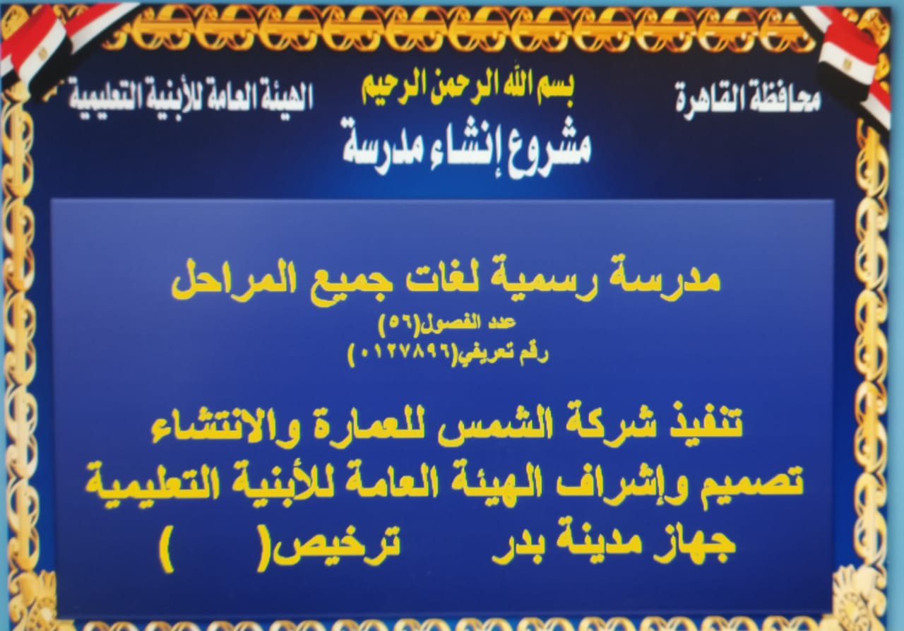 تبدأ هيئة الأبنية التعليمية، بقيادة اللواء يسرى عبدالله، مدير الأبنية التعليمية، فى  إنشاء أكبر مشروع تعليمى على أرض مدينة "بدر"، وهو مدرسة جديدة  رسمية لغات "تجريبى"، بعدد (56) فصل على مساحة أكثر من (6816) ألآف متر مربع وبتكلفة بلغت أكثر من (16) مليون و 800الف جنية، لتصبح أكبر مدرسة فى المدينة من حيث عدد الفصول (56)، وأكبر نموذج فى منشأت المدارس القديمة بالمدينة بعدد (43) فصل.