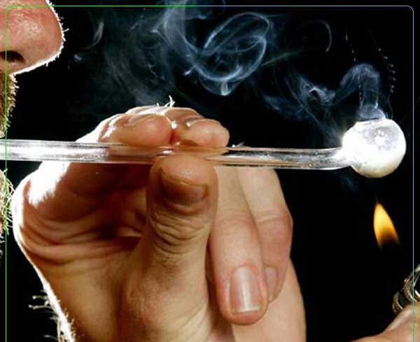 التدخين: من أشهر طرق تعاطي الكريستال ميث، حيث يحرقه المدمن في أداة النرجيلة ويستنشق الدخان الصادر منه.